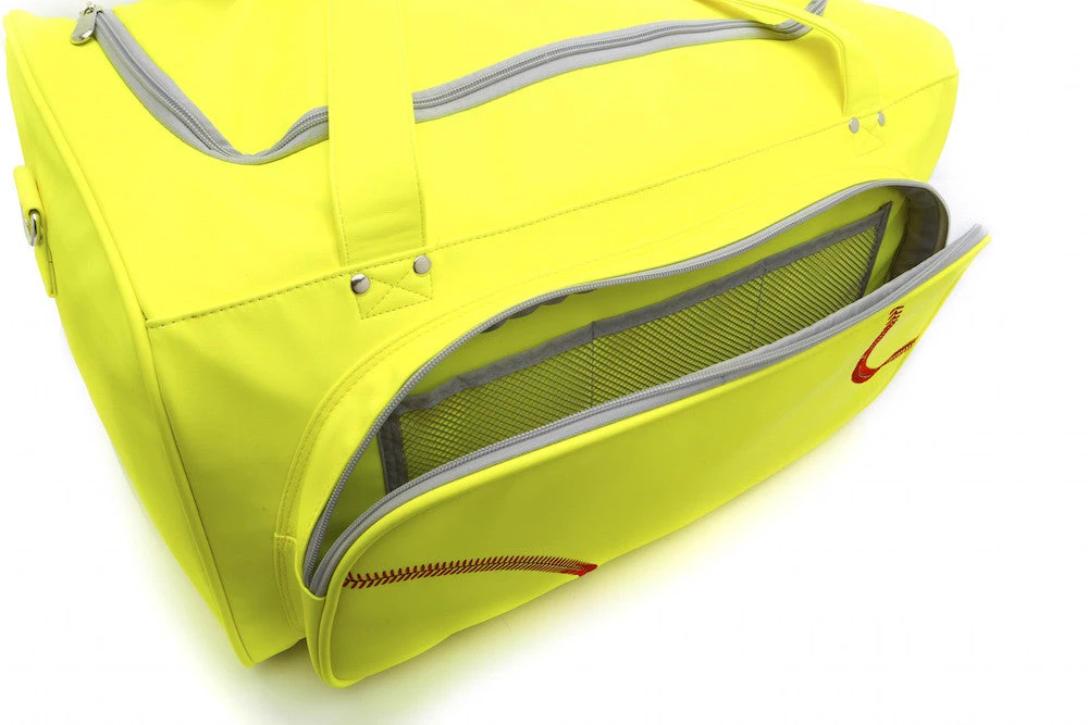 - Made from actual softball materials…it doesn’t just LOOK like a softball, it IS softball! It’s made from the real thing and feels amazing as a duffel bag!